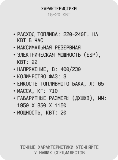 Что мы сделали:Наши менеджеры рассчитали суммарную нагрузку до 24 кВт и предложили оптимальный вариант — дизельный генератор ТЕХНОЗИОН АД30-Т400 в шумозащитном еврокожухе.